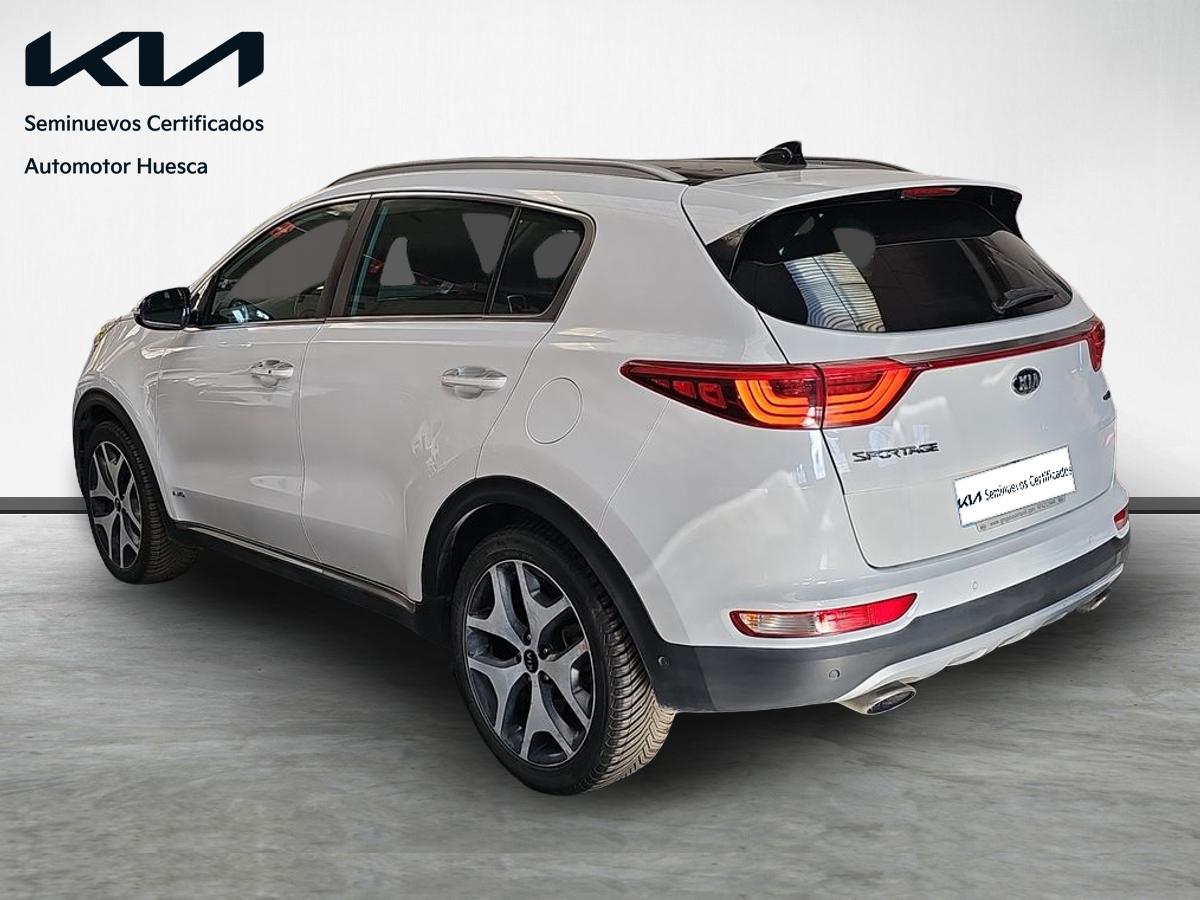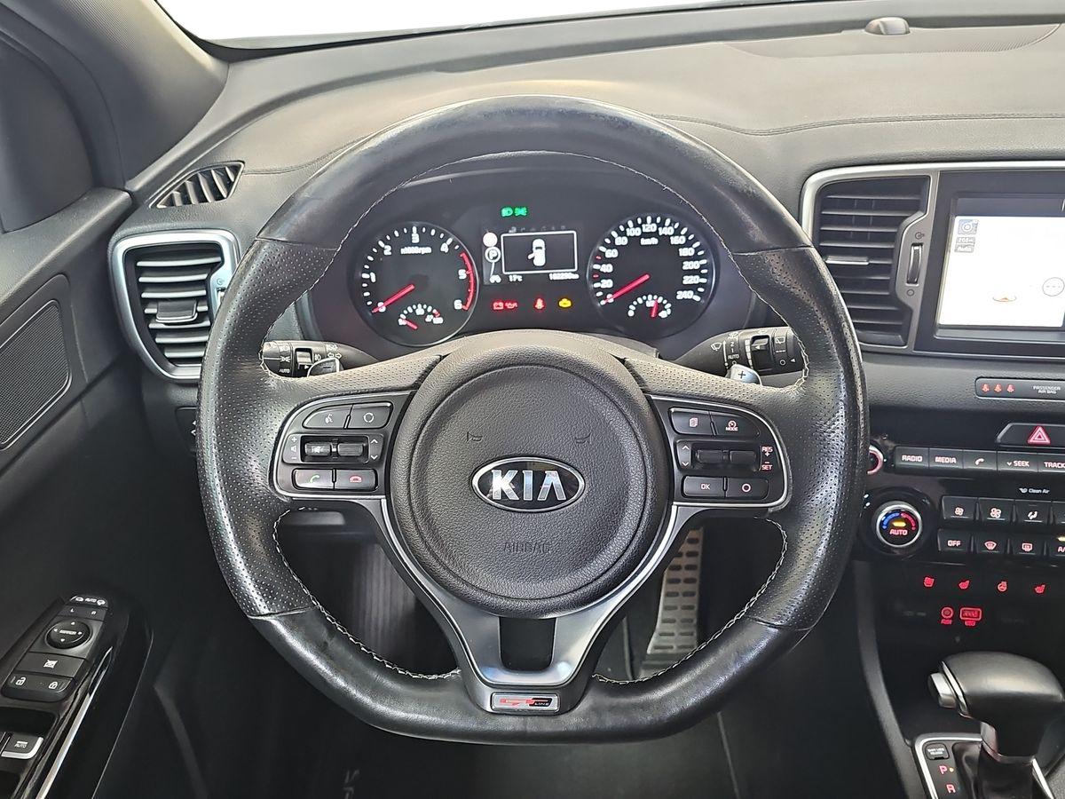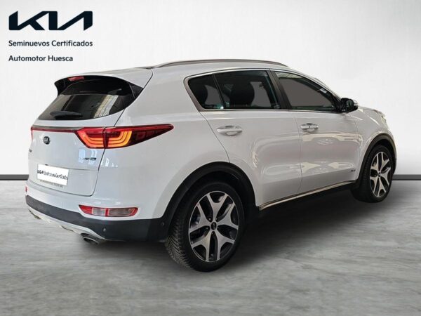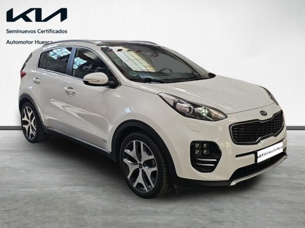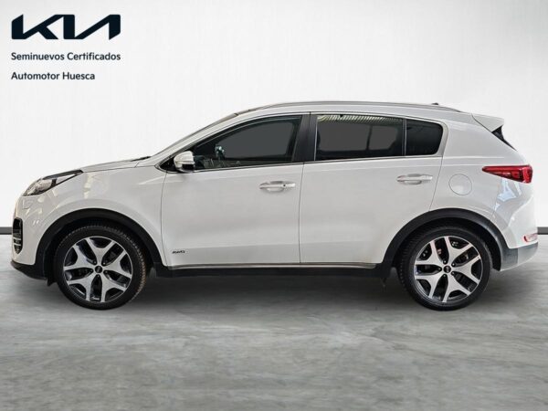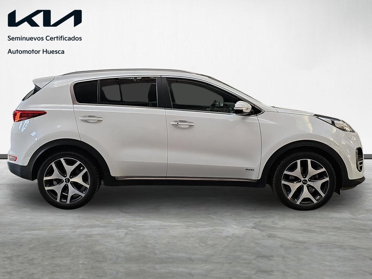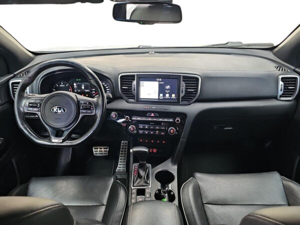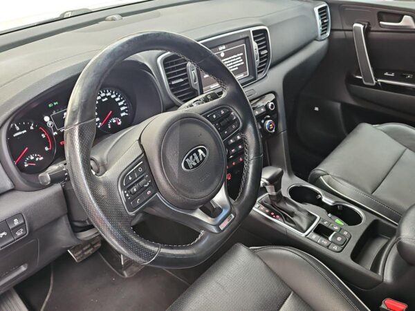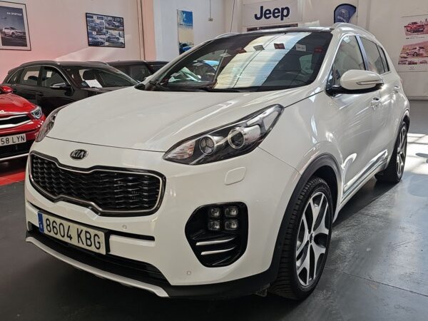 Kia Sportage 1.2 CRDi 185cv 4×4 GTLine. Equipado con volante multifunción y tapicería en piel, navegador de la marca, asistente de mantenimiento de carril, control de bajada en descenso, cámara trasera con ayuda al estacionamiento, sensores de parking, asientos con ajuste electrico calefactados y ventilados, climatizador bizona, control y limitador de velocidad, sistema Start/Stop desconectable, asistencia de aparcamiento, portón de mletero automático, sensor de luces automáticas, techo solar panorámico, conectividad Android Auto / Apple Car Play etc…