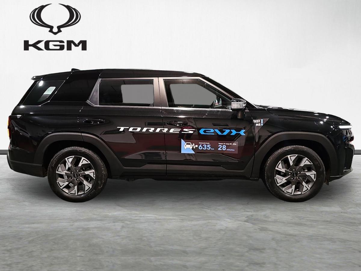 KGM Torres EVX Trend. Equipado con llave inteligente, sistema SASS (control de velocidad adaptativo, centrado de carril, eCall, etc…), sensores de parking, cámara trasera con ayuda al estacionamiento, etc…
