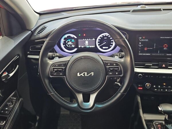 Kia Niro PHEV Drive. Equipado con volante multifunción, control de crucero y limitador de velocidad, sensor de luces y lluvia, navegador, climatizador bizona, cámara trasera con ayuda al estacionamiento, sensor de aparcamiento trasero, navegador de la marca, Android Auto / Apple Car Play, etc…