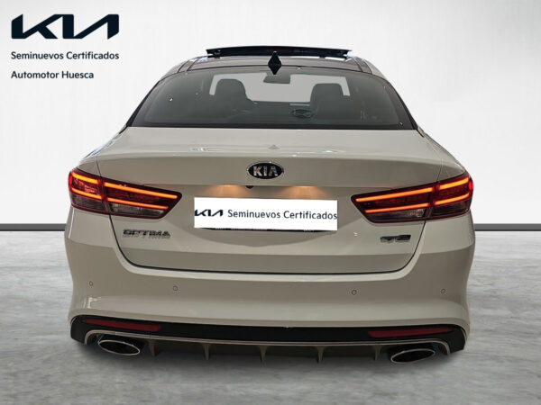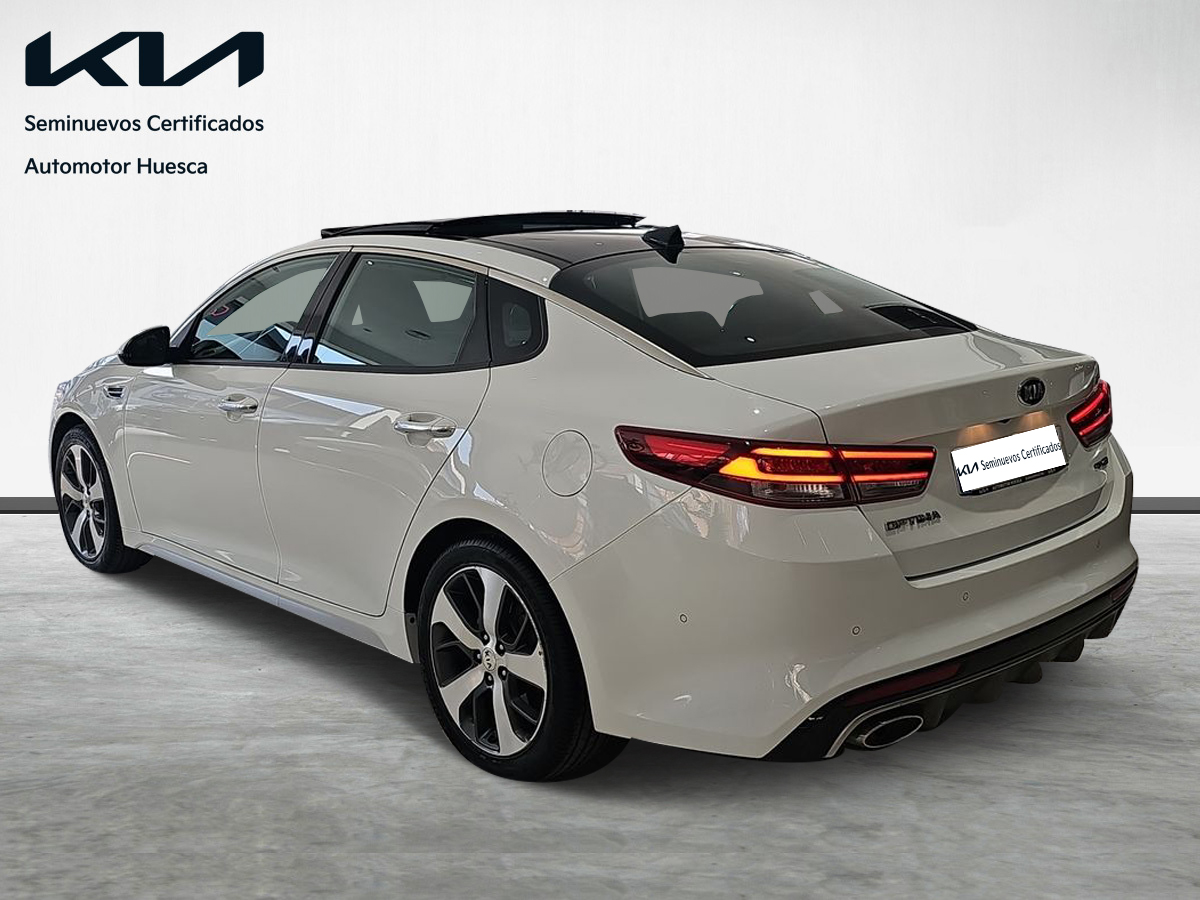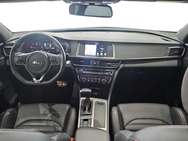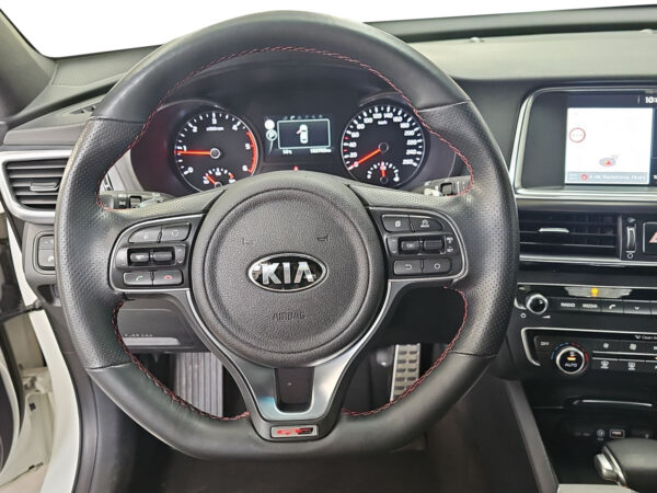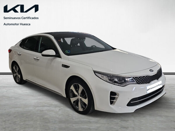 Kia Optima 1.7 CRDi GTLine Automático. Modo aparcacoches automático. Equipado con volante y palanca de cambios en cuero, sistema de audio Bluetooth, Android Auto / Apple Car Play, llave inteligente, control de crucero y limitador de velocidad, sensor de luces y lluvia automático, luz diurna tipo led, cámara trasera, sensores de parking, asientos calefactados también en plazas traseras y ventilados en las plazas delanteras, modos de conducción, levas en el volante, techo solar panorámico, etc…