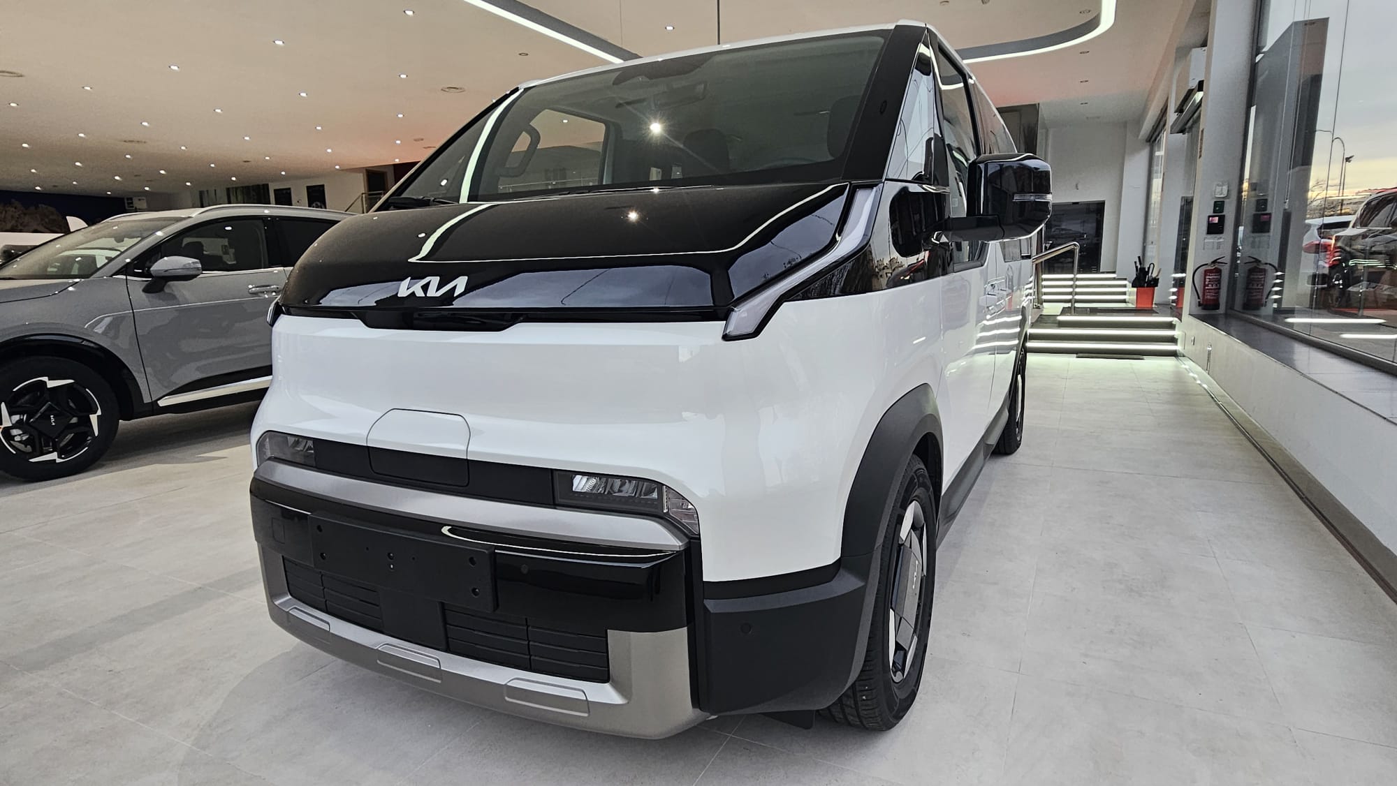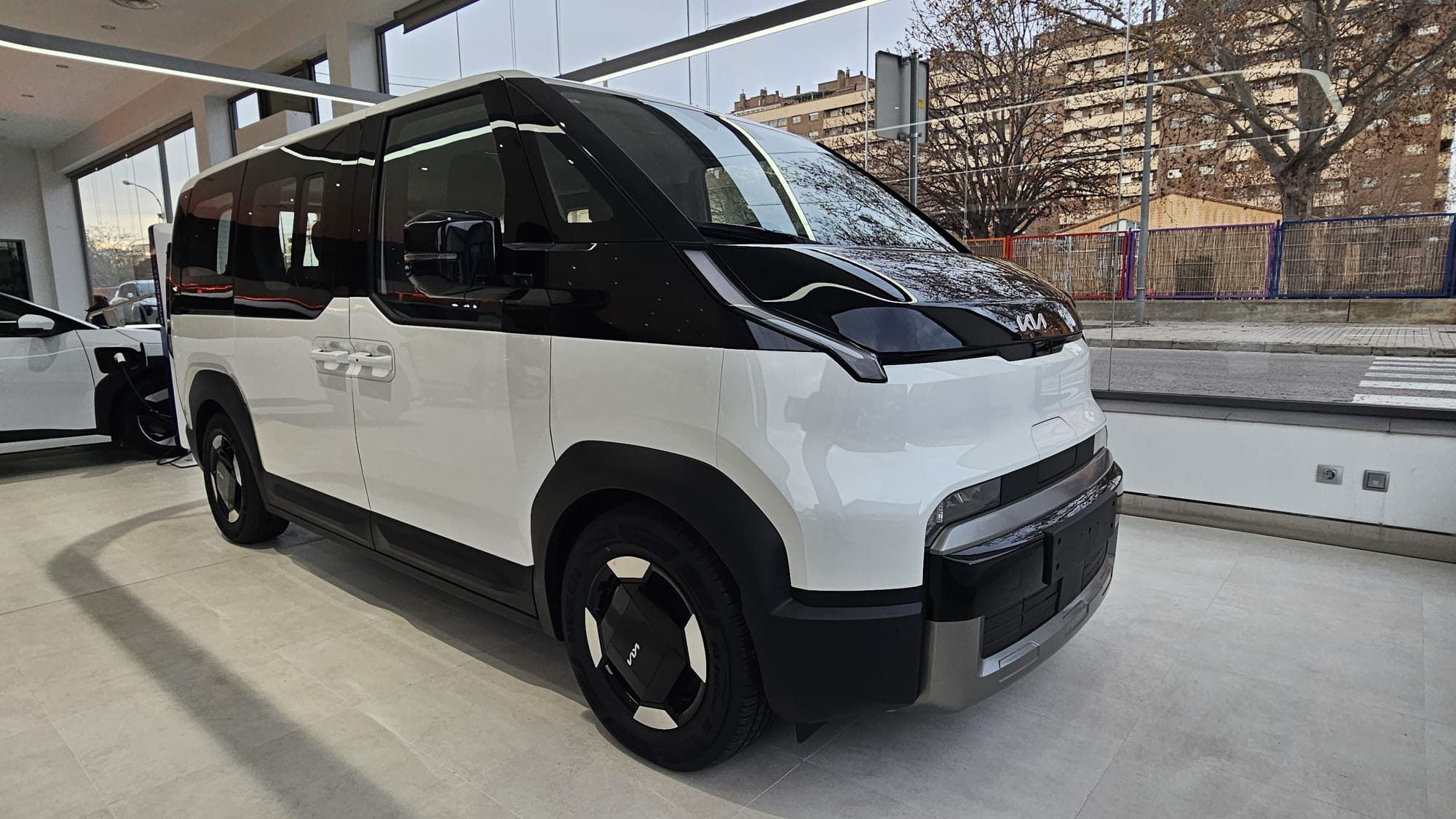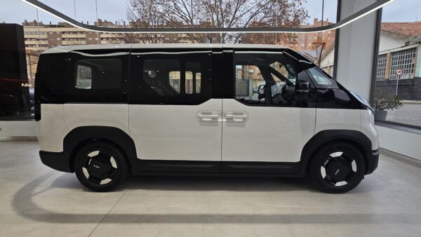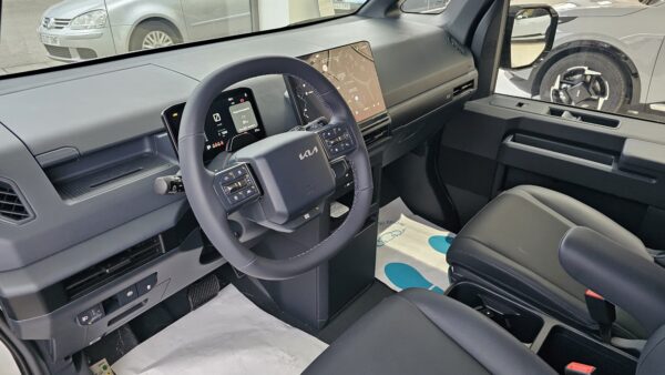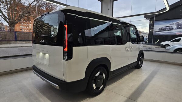 KIA PV5 Passenger L2H1 Long Range Plus. Equipado con llave inteligente, control de luces y limpiaparabrisas automático, control de velocidad adaptativo, centrado de carril, sensores de parking, cámara trasera con ayuda al estacionamiento, Drive Mode con modo Snow, conectividad Android Auto y Apple Car Play y sistema de control del vehículo desde la app de KIA. Autonomía 416 kilómetros WLTP. Consumo medio kWh/100 km.