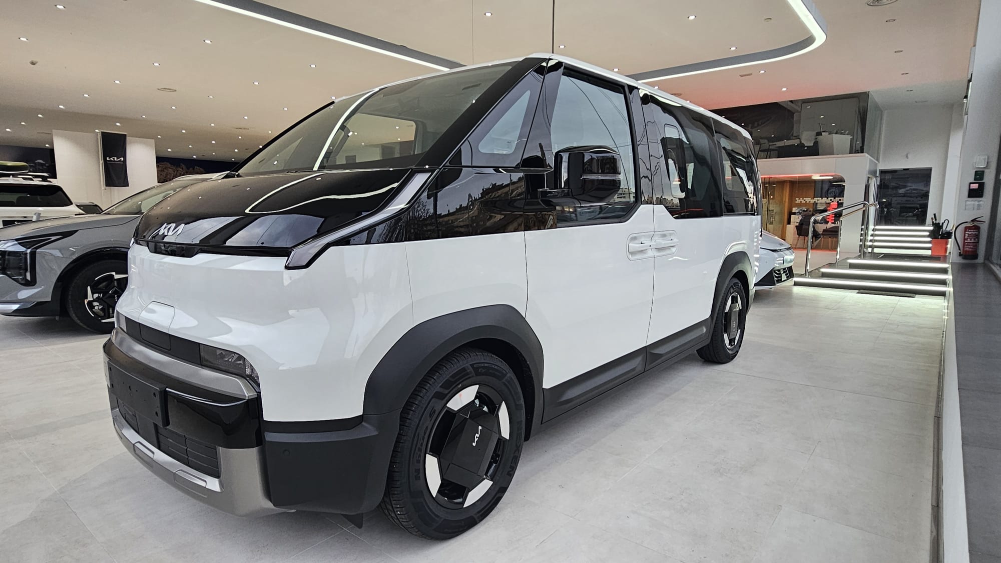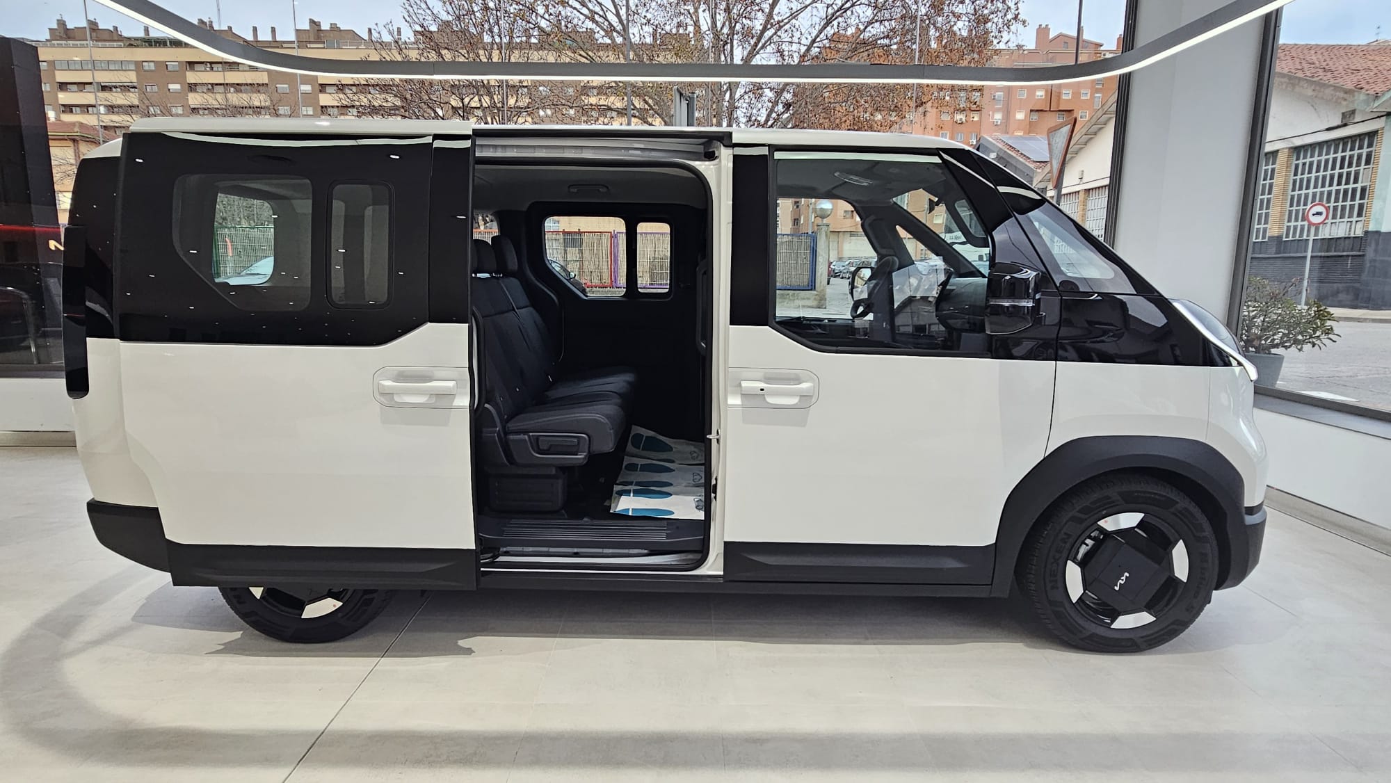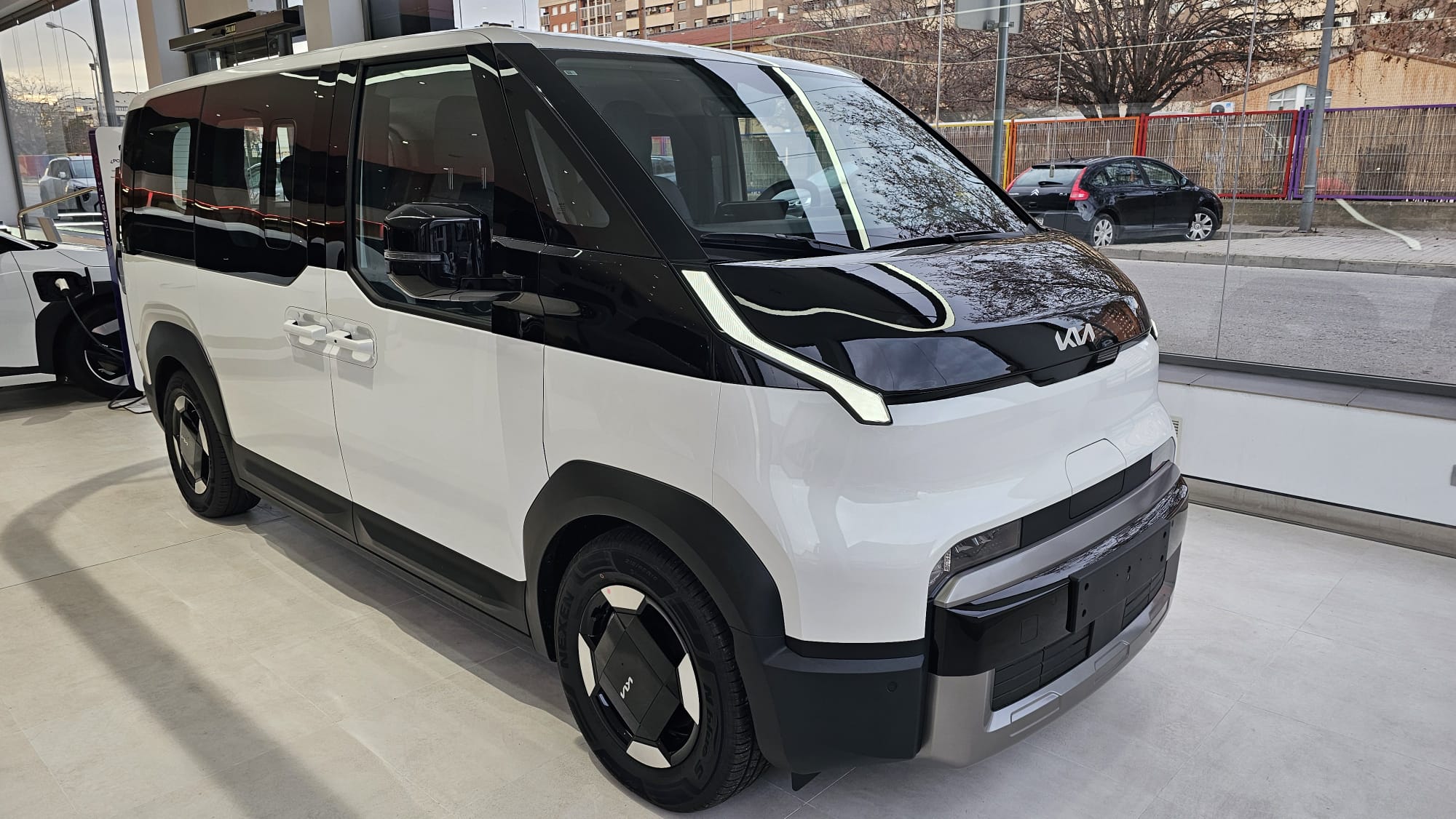 KIA PV5 Passenger L2H1 Long Range Plus. Equipado con llave inteligente, control de luces y limpiaparabrisas automático, control de velocidad adaptativo, centrado de carril, sensores de parking, cámara trasera con ayuda al estacionamiento, Drive Mode con modo Snow, conectividad Android Auto y Apple Car Play y sistema de control del vehículo desde la app de KIA. Autonomía 416 kilómetros WLTP. Consumo medio kWh/100 km.